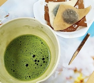学生時代、茶道部だったスタッフがお茶をたて、和菓子と一緒に召し上がっていただきました。