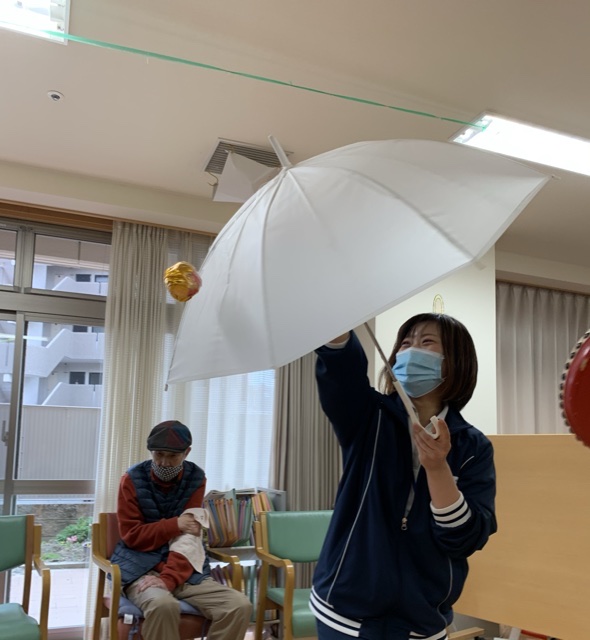 芸達者?なスタッフが、ミニ獅子舞、傘回しや扇子を使った芸などを、披露してくれました。
