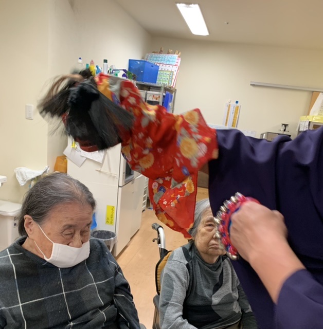 今日は、デイサービスで新春お楽しみショーを開催しました。スタッフの急な思いつきでやることになったため、練習時間はわずかでしたが、利用者さんに楽しんでもらうため、がんばりました。