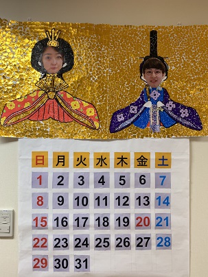 毎回皆さん貼り絵を頑張ってくれているのですが、今年のお内裏様とお雛様の顔は写真になっています。